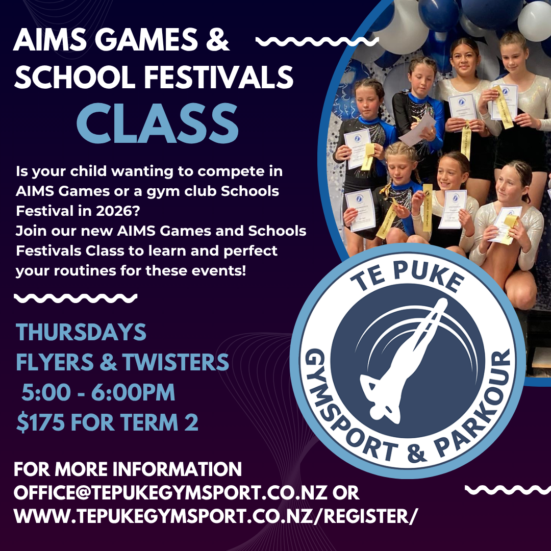 TRAINING OPTIONS – Te Puke Gymsport is offering all registered schools free venue hire for training with 3x 1 hour sessions. If you are interested in coaching or coming to train in our facility please get in touch for more information.