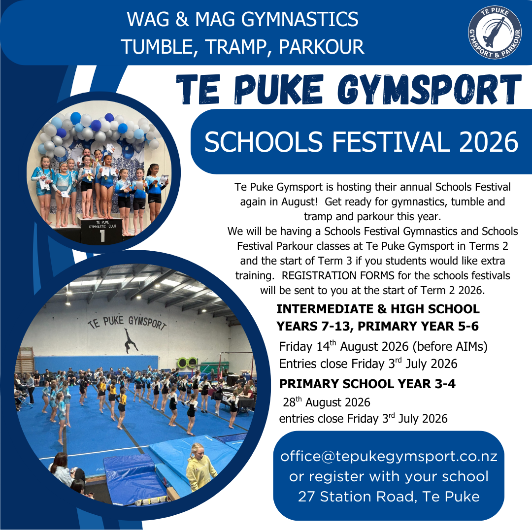 Any questions please call on 07 573 4572 or email office@tepukegymsport.co.nz